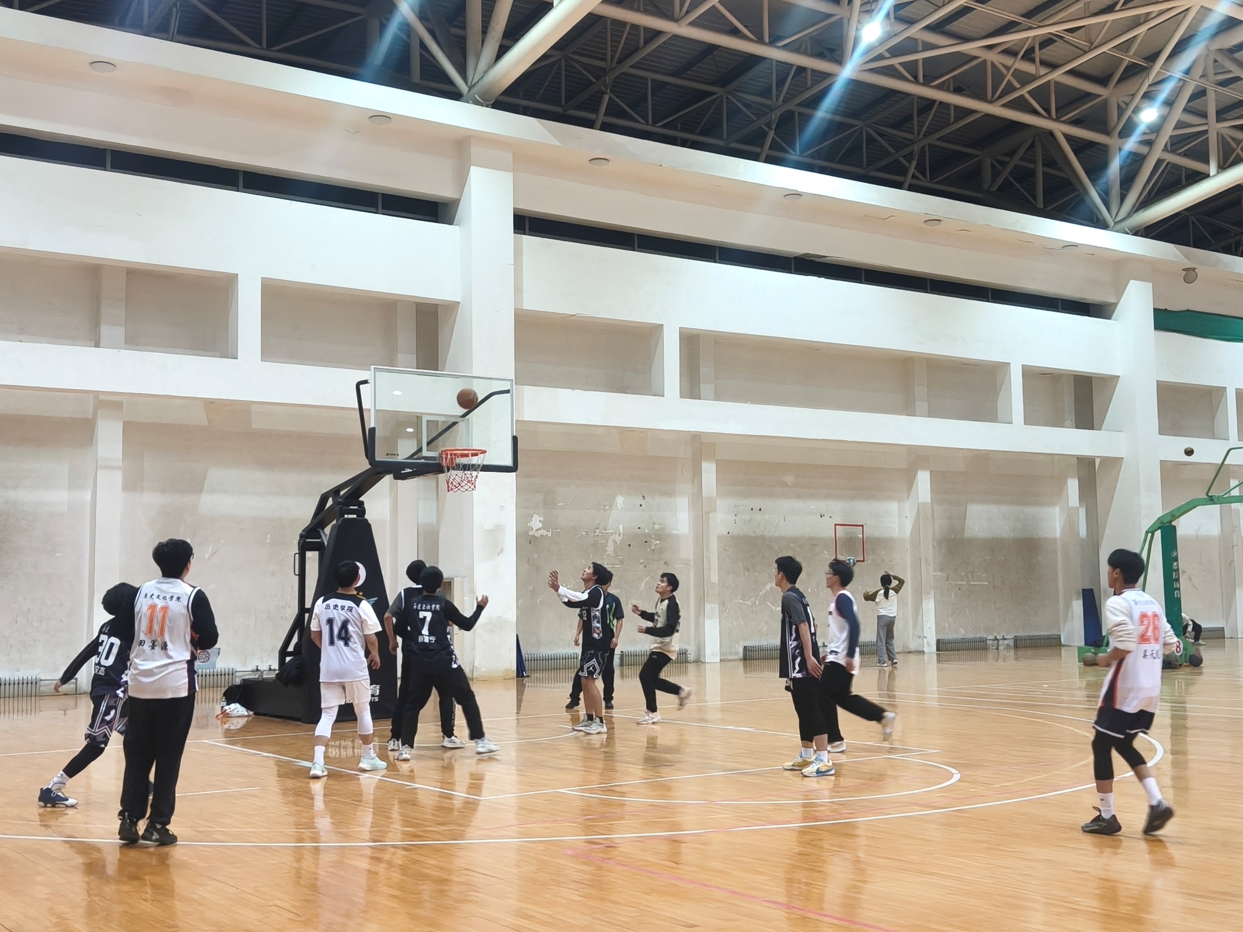 冬日场馆,热度不减。12 月 26 日晚,历史文化学院男子篮球队在体育馆二楼,用一场精彩绝伦的结训赛,为第一阶段训练画上圆满句号。队员们在赛场上顽强拼搏,赛出风格、赛出水平,更赛出团结与友谊,将热血青春尽数挥洒在这场酣畅淋漓的赛场画卷之中。