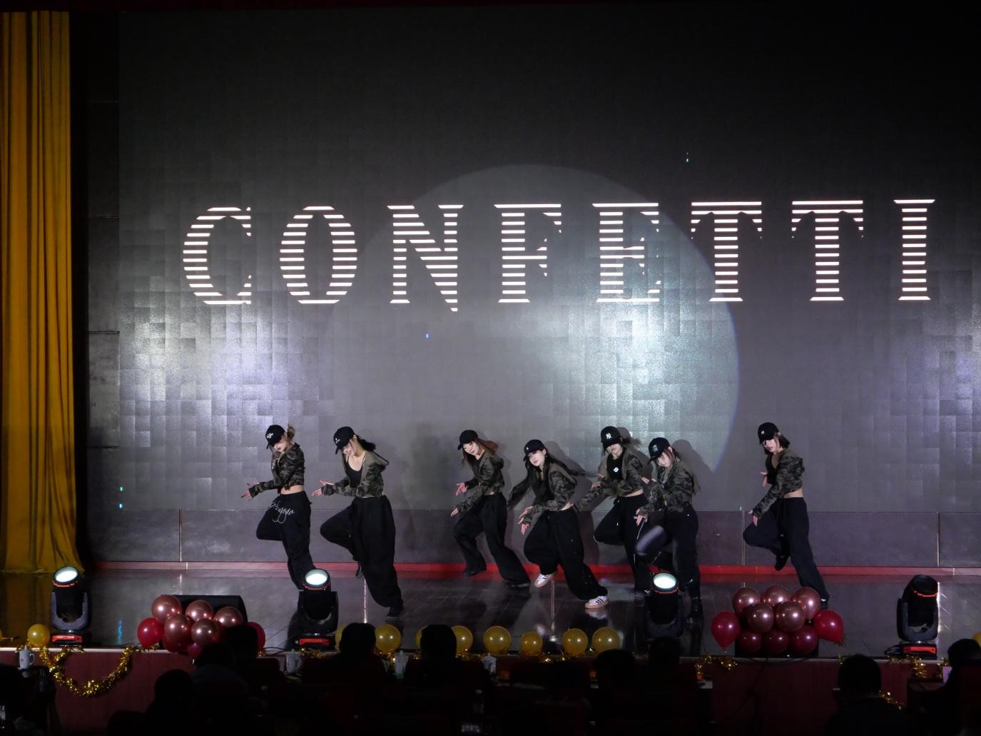 开场表演可谓精彩纷呈,在晚会伊始便聚焦了观众的注意力。吉他协会乐队带来的《想去海边》,旋律如清风拂面,明快节奏洋溢少年意气,台下观众随律动跟唱;紧接着,πFlow 街舞社的《Confetti》酷炫登场,精准卡点的舞步张力爆棚,彻底点燃现场氛围,欢呼声如潮水涌动。