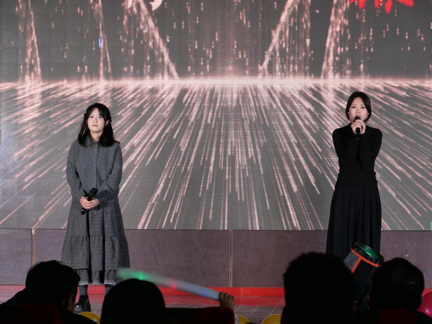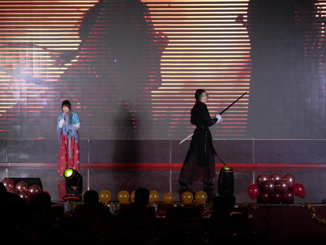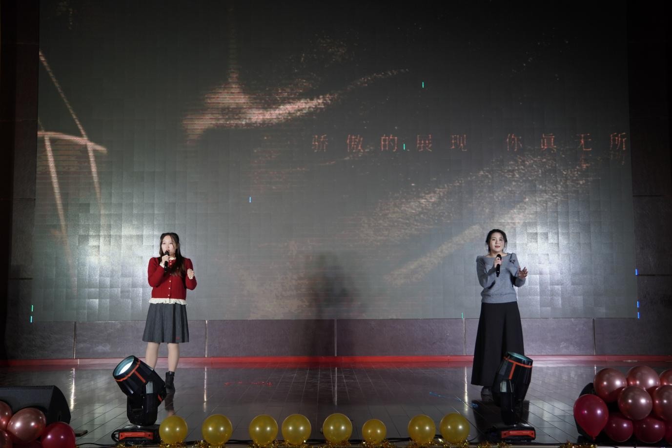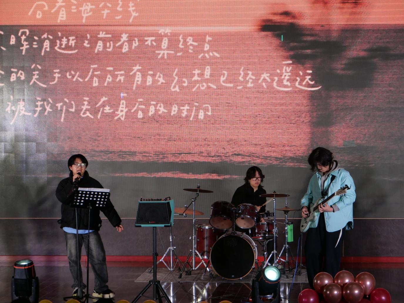 迎新晚会在轻灵的歌声中落入尾声。歌者踏着星辉入场,深情翻唱《有我》。随着鼓点渐昂,歌声如星火燎原,点燃全场的情绪。听众仿若也擎起火炬,奔赴山河之间,用赤子之心丈量“不负韶华”这四个字的历史厚度,彰显出青年 “不负韶华、勇担使命” 的坚定信念。