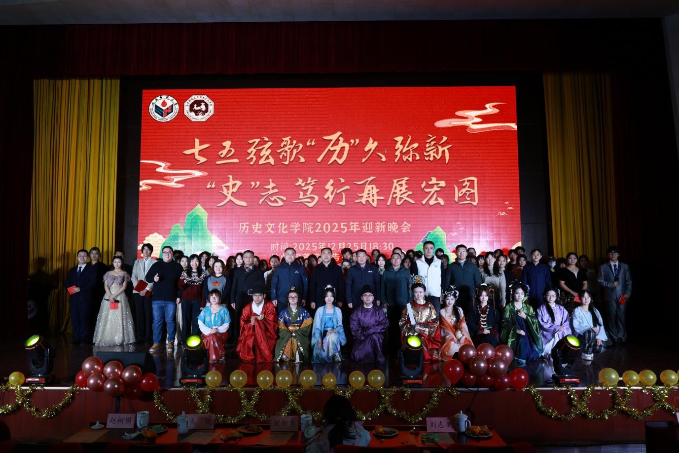弦歌不辍,薪火相传忆峥嵘;初心如炬,宏图再展向未来。本次迎新晚会不仅展现了学院贯通古今的深厚底蕴与青春活力,也为师生搭建了情感交融的温暖桥梁。2025 级新生们收获了归属与感动,坚定了以史为鉴、笃行致远的志向。演出结束后,全体嘉宾、演职人员与工作人员合影留念,将这一刻的欢笑与感动定格。历史文化学院 2025 年迎新晚会圆满落幕!