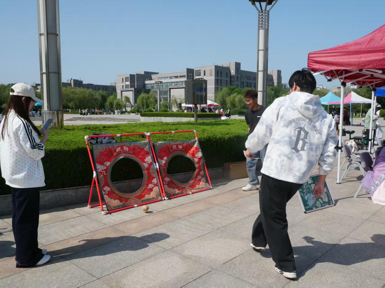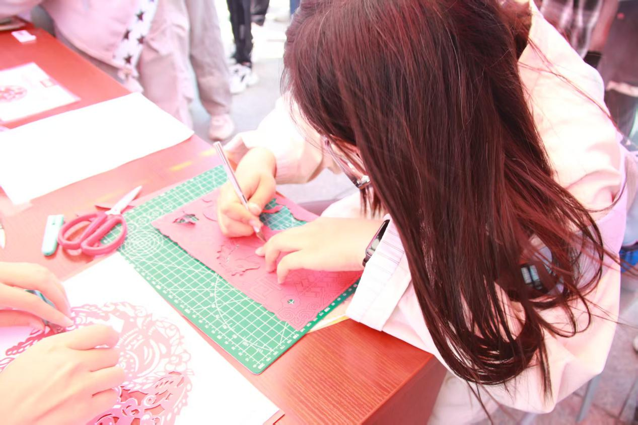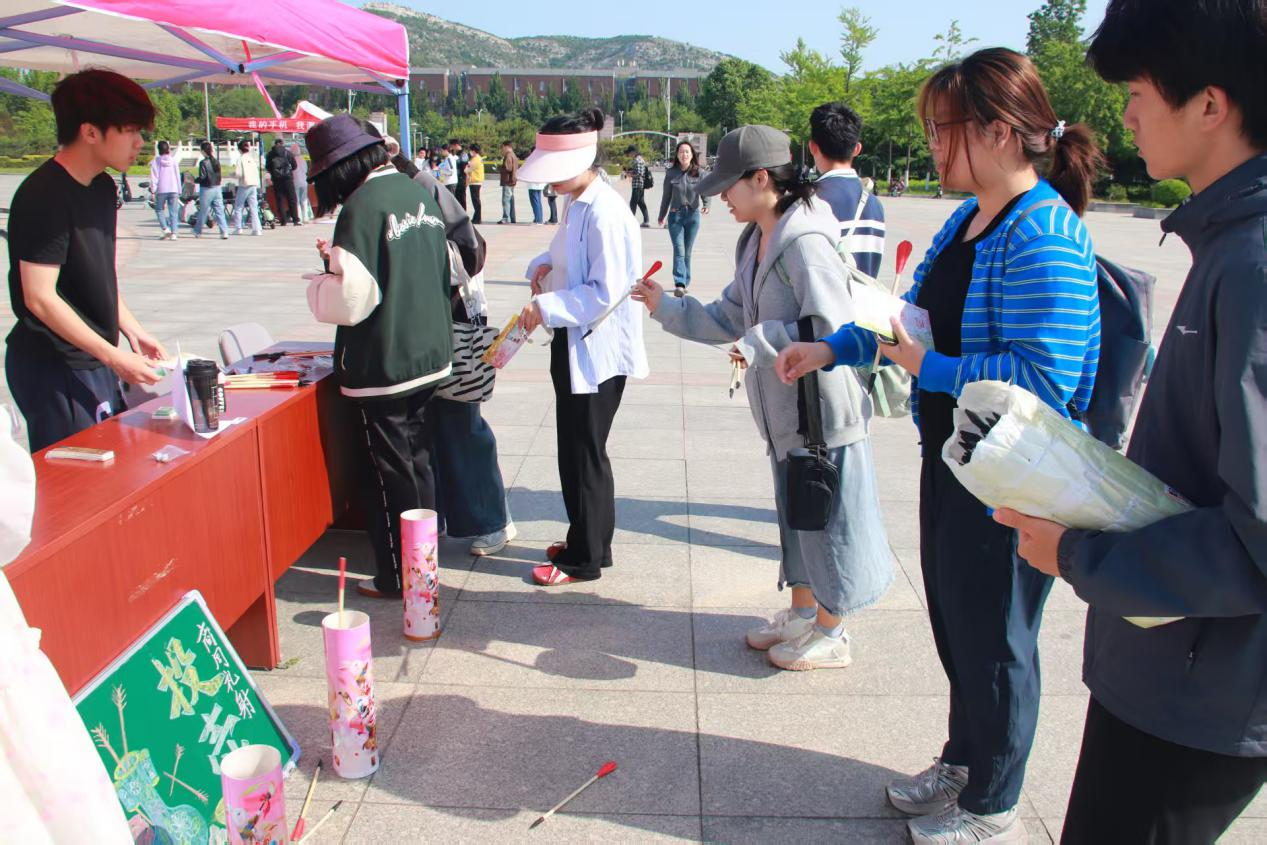 活动现场,人声鼎沸。投壶区箭矢起落流露礼仪之美,蹴鞠区足下生风洋溢热血朝气,剪纸区巧手翻飞雕琢非遗之美,飞花令现场诗词流转尽显书香底蕴。同学们在各个摊位前热切讨论,跃跃欲试。此刻,千年文脉化为触手可及的趣味互动,焕发出勃勃生机。