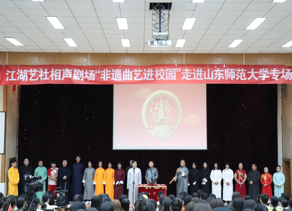 9月26日晚,历史文化学院在长清湖校区文渊楼第二报告厅举办“非遗曲艺进校园”相声专场活动,特邀济南“江湖艺社”到场演出。学院辅导员郭慧颖与数百名学生共同观看演出。此次演出以弘扬中国优秀传统文化为核心,也被纳入学院正在开展的 “不忘初心、牢记使命”主题教育学习计划。