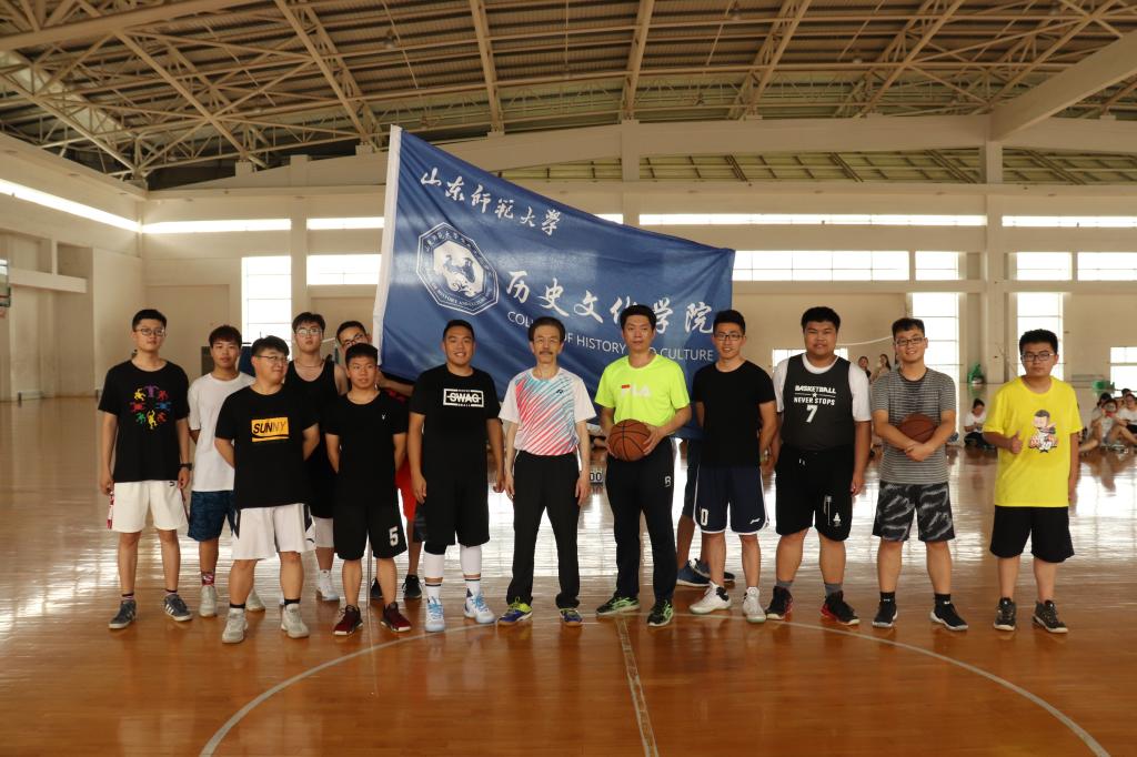 6月20日,为送别即将离校的毕业生,历史文化学院在长清湖校区体育馆二楼举行师生交流篮球赛。博士生导师李云泉教授、辅导员高伟等到场参加比赛,与毕业生们同台竞技。