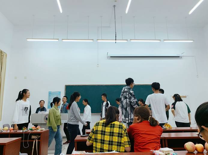 活动开始前,刘畅为新生分发悉心准备的月饼、水果、零食糖果等,送予同学学院及老师的关怀。晚会正式开始,主持人致辞,诉说中秋节日祝福。随后,同学们纷纷上台展现才艺,节目精彩纷呈,既有传统的歌曲、舞蹈,也有新颖的悠悠球表演,台下观众亦热情高涨,教室中充溢着欢声笑语,传出阵阵掌声。待学生节目表演完毕,刘畅上台演唱歌曲并与大家交谈,令同学们倍感亲切。接着,进入游戏环节,“萝卜蹲”、“一块五”等游戏紧张进行,不仅考验同学反应力和团队合作能力,也增进了团队精神及同学情谊。晚会在其乐融融的氛围中圆满结束。