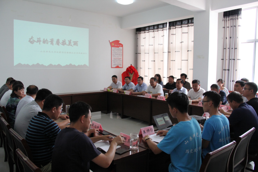 近期,山东师范大学历史文化学院赴蒙阴岱崮社会实践服务队围绕“乡村干部访谈”和“口述乡村史”两大主题,提前并超额完成实践任务,取得了较为突出的成绩。7月15日-16日,省派乡村振兴服务队队长、省教育厅(省教育工委)二级巡视员刘欣堂和山东师范大学党委副书记王焕斌一行前往蒙阴岱崮镇探望历史文化学院“知行蒙阴”社会实践服务队师生,并举办校地合作座谈交流会,刘欣堂、王焕斌、蒙阴县政府、岱崮镇政府领导以及省派乡村振兴服务队、山东师范大学部分部门负责人和历史文化学院实践队全体师生共40余人出席了此次会议。
