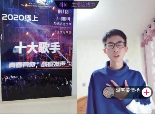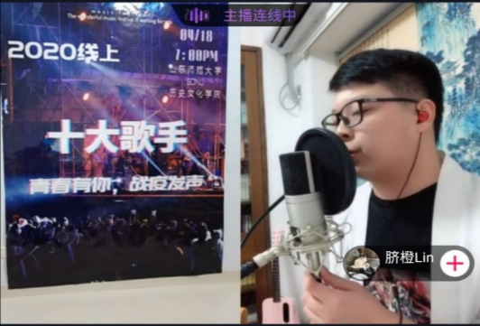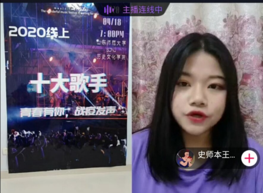 在第一轮的踢馆赛中,三位擂主王雪华、袁满、孙申凭借坚实的功底和出彩的表现,相继守擂成功。在氛围活跃的中场线上互动游戏—听歌识曲之后,第二轮排位赛正式拉开帷幕,十位选手依次登场,虽然隔着屏幕,但他们美妙的歌声、出彩的技巧和真切的情感,依然让观众们如痴如醉,喝彩不停。历史类1903班李晓倩同学用一曲《追光者》,表达了对这场疫情阻击战中勇敢追光人的崇敬和仰慕;研究生孙申一曲《外面的世界》,将我们的思绪引出窗外,奔向诗和远方;史师本1901班高阳演唱的《夏天的风》,柔和的曲调中饱含了对山师校园的思念。各位选手在比赛中的表现都异常精彩,评论区好评如潮,观众们直呼过瘾。