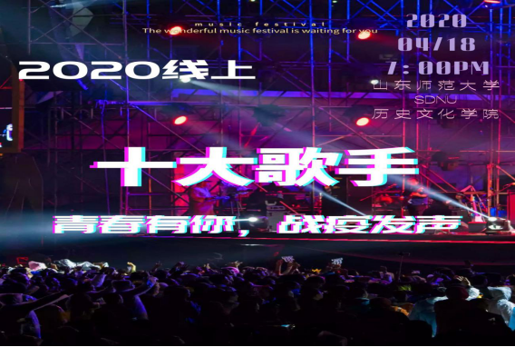 4月18日,历史文化学院通过线上平台举办“青春有你,战‘疫’发声”十大歌手比赛的决赛,为学院师生带来了一场精彩绝伦的视听盛宴。音乐学院辅导员孔澍睿、新闻与传媒学院辅导员侯玉娜、外国语学院辅导员李宁宁、历史文化学院2018级辅导员郭慧颖、2017级辅导员衣晓杰、2019级辅导员刘畅和历史文化学院2016级学生、网易云音乐人林启丞担任此次大赛的评委。