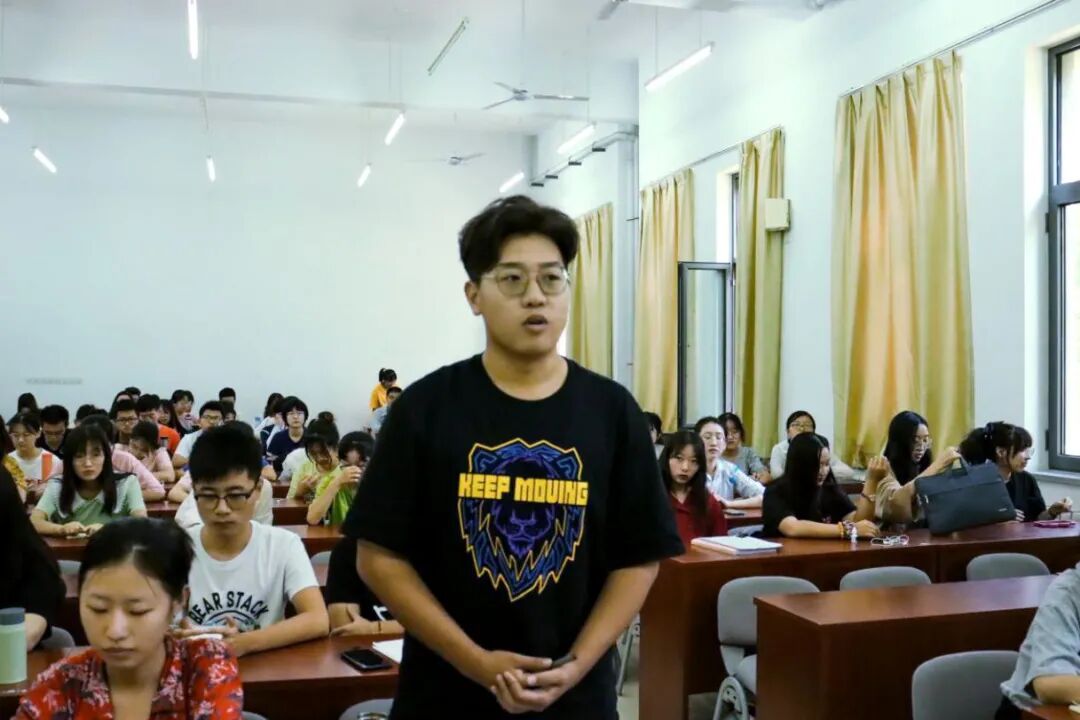 大会伊始,蒋艺首先向同学们做自我介绍。接着,她从“初心是何”、“初心在哪”和“初心莫忘”三个方面分别做出讲解。蒋艺对“初心是何”即什么是学生干部这一问题做出了具体解释。随后,蒋艺向学生会成员提问成为学生干部的初心是什么。学生会主席杨文海回答:“成为学生干部虽然每天会遇到很多困难,但是在解决困难之后获得了一种成就感。”这种成就感使他愿意更好地为大家服务。文体权益部部长张温婕说:“最初竞选学生会是不甘平凡,之后在学生会从零开始把一件件事情办好,带来的喜悦感与成就感使我感到开心。”学生会成员的回答都提到了责任、兴趣、服务等关键词,体现了学生会成员尽心负责,不忘初心的工作态度。