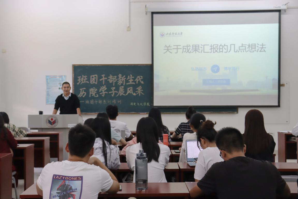 为进一步提高班团干部的综合素质,明确学生干部工作方向,9月17日,历史文化学院于长清湖校区崇德楼116室召开“班团干部新生代,历院学子展风采”班团干部培训会第四期,本次会议由2019级研究生宋华政担任主讲,全体学生会成员、2018级和2019级班委参会。
