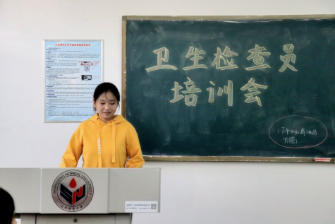 主讲人向卫生检查员详细讲述检查结束后对有问题的宿舍拍照及留纸条的问题,以便督促同学们时刻保持卫生,从而提高宿舍的整洁度。最后,主讲人强调了卫生检查员自身礼貌问题。会议在同学们热烈的掌声中落下了帷幕。