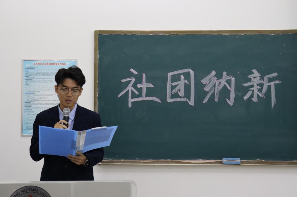 此次纳新活动包括社团宣讲和自主报名两个环节。活动伊始,主持人致开场词,宣布活动开始。麒麟学社首先上场,以其深厚久远的文化底蕴和精彩纷呈的社团活动为宣讲会造足声势;随后各其他社团代表一一上台进行宣讲,展现各自特点:“华夏复兴衣冠先行,始于衣冠达于博远”,“流光画雨”汉服社负责人立意传承传统文化,给大家带来趣味横生的审美体验;小影院社团负责人用一段炫酷的电影剪辑引燃全场,台下惊呼连连;绿茵魔足足球社负责人以轻松诙谐的方式向大家介绍了足球社的光辉历史与骄人成绩;山师棋牌桌游社负责人则奉上一段简洁可爱的技术流视频,其新颖独特的宣讲方式可谓吸足眼球。在大家意犹未尽的掌声与欢呼中,宣讲环节圆满结束。