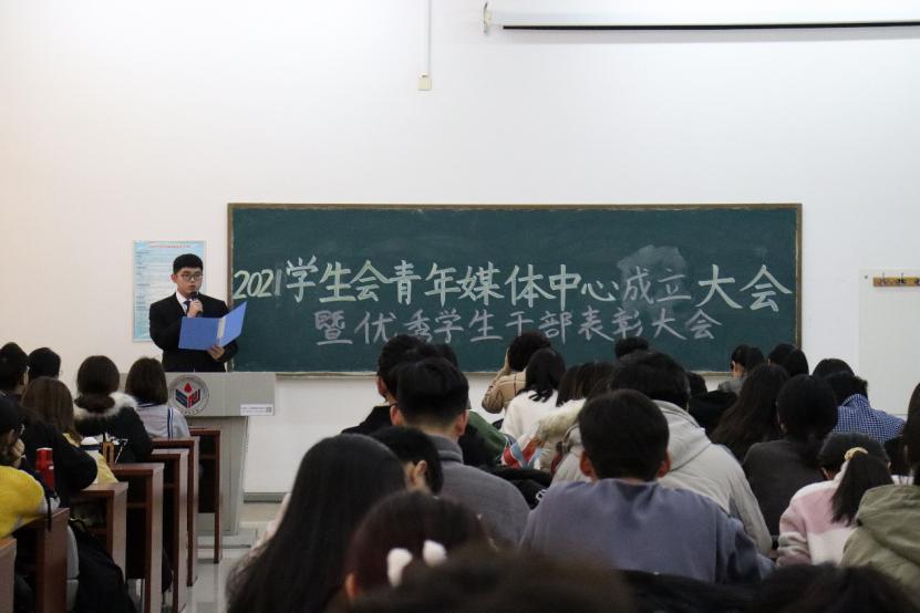 大会伊始,2020届学生会主席杨文海、青年媒体中心主席李健先后做工作总结发言。他们表示,在过去一年的工作中,学院积极有效开展各项工作,学院学生会与青年媒体中心履行职责、相互配合,取得了丰硕的工作成果。他们对老师们的工作指导及同学们的积极配合与参与做出感谢,同时对新一届学生会与青年媒体中心的发展做出美好展望。紧接着,衣晓杰宣读2021届学生会和青年媒体中心主席团、部长、副部长名单。随后,蒋艺对过去一年在学生会、青年媒体中心工作中辛勤付出的同学进行表彰,公布2020届学生会、青年媒体中心优秀学生干部表彰名单,魏宁、刘畅分别对学生会、青年媒体中心优秀学生干部进行颁奖。最后,2021届学生会主席吴德方、2021届青年媒体中心主席温琪钰做对未来工作的规划以及表达美好展望。大会至此圆满结束。