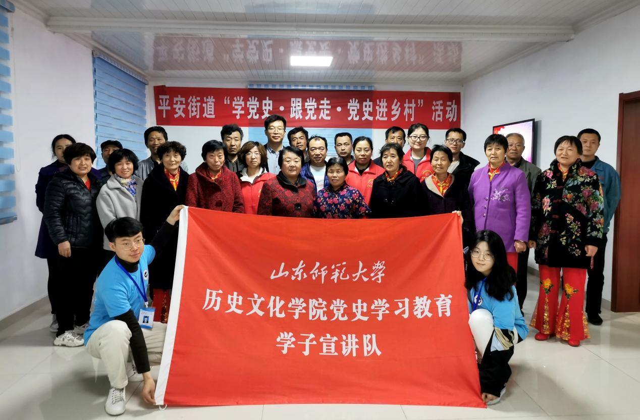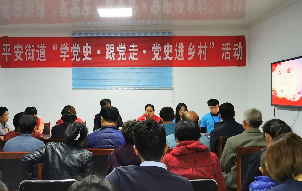 为庆祝建党100周年,也为了更好地满足基层党员干部和村民群众了解党史、加强党性修养的切实需求,助力乡村振兴,4月23日晚,历史文化学院党史学习教育学子宣讲队赴长清区平安街道前孙村开展了“学党史 · 跟党走 · 党史进乡村”党史宣讲。我院学子宣讲队成员赵浩涵在前孙村党群服务中心进行了以“开天辟地换新貌 南湖红船扬帆行——重温中共一大”为主题的党史宣讲,平安街道成红园副主任等管理区负责同志,前孙村民党员、群众代表和学子宣讲队带队老师衣晓杰及部分成员等40余人在现场聆听宣讲。