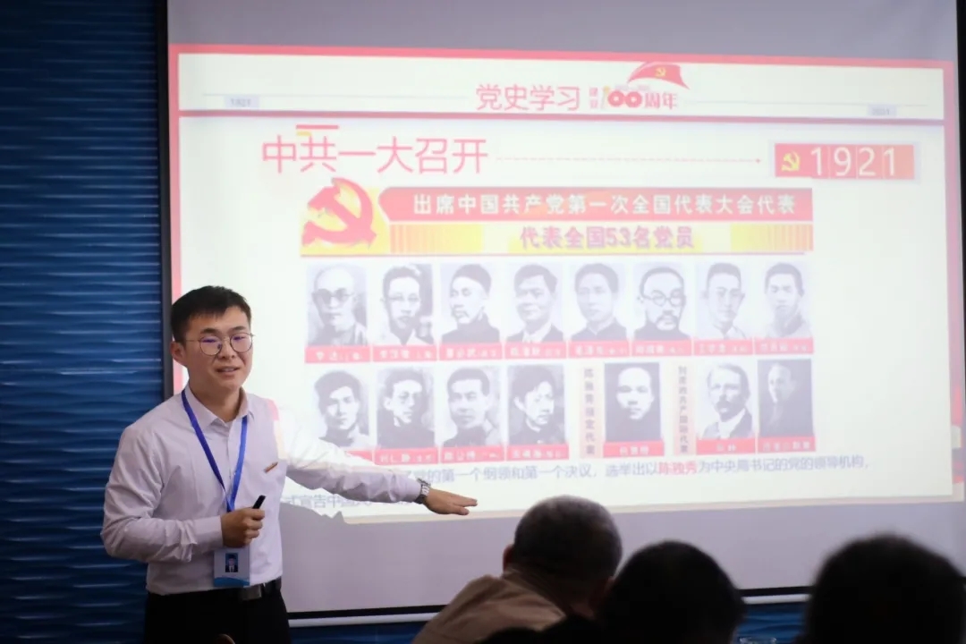 “中共一大的召开时间是哪天?”“建党节又为何定在7月1日?”王浩通过与济南市再生资源总公司党员们的互动交流引入了本次宣讲的主题。王浩首先带领大家重温了中共一大召开的背景,简要介绍了各地的共产主义小组,以及出席中共一大的十三位国内同志。接着,又为大家讲解了7月1日成为党的生日的历程。随后,王浩以邵维正教授在《中国社会科学》杂志发表的相关文章为依据,分析了邵教授是如何用口述与回忆录、间接证据、文字档案等多方面材料论证一大召开于7月23日的。同时,王浩也指出虽然中国共产党成立的准确日期最终被考证出来,但是党的纪念日——“七一”却不能被我们忘记。最后,王浩引用习近平总书记在党史学习教育动员大会上的讲话,鼓励听众“增强历史自觉,把苦难辉煌的过去、日新月异的现在、光明宏大的未来贯通起来”,这不仅是我们历史工作者要做的事情,更需要社会各界的支持。在中国共产党新的百年征程中,我们应该风雨无阻,砥砺前行,开创属于我们这一代人的伟业。