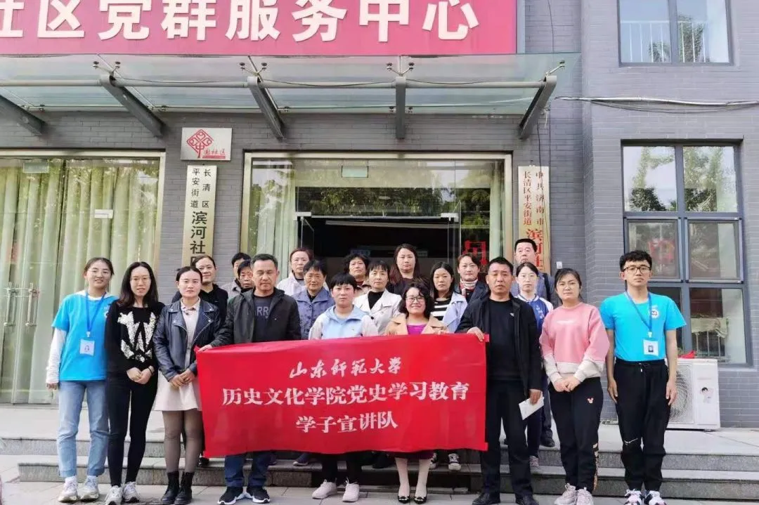 为庆祝建党100周年,在党史学习中砥砺初心使命,汲取奋进力量, 4月30日下午,历史文化学院党史学习教育学子宣讲队在长清区滨河社区进行了党史汇报宣讲会。宣讲队成员党祎超在滨河社区进行了以“不忘初心、牢记使命——重温中共一大”为主题的党史宣讲,滨河社区党委副书记孟炎、滨河社区居委会副主任孙秀丽、滨河社区全体党员干部以及历史文化学院团委委员蒋艺,学子宣讲队部分成员共40余人参加了本次宣讲活动。