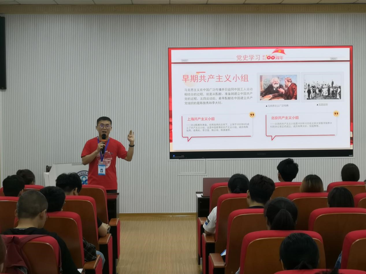 为庆祝中国共产党成立100周年,在党史学习中砥砺初心使命、汲取奋进力量。5月14日18时,历史文化学院党史学习教育学子宣讲队在数学与统计学院进行了校内第二场党史汇报宣讲。我院学子宣讲队成员王浩在文渊楼B区119学术报告厅进行了以“再访历史现场,重温中共一大”为主题的党史宣讲,学子宣讲队部分成员以及数学与统计学院全体研究生中共党员、入党积极分子和最新一批党员发展对象等140余人在现场聆听了宣讲。数学与统计学院研究生辅导员吴相江老师出席并主持了此次的宣讲活动。