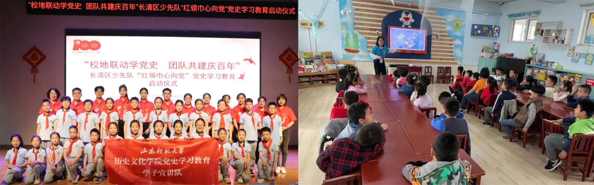 开创“宣讲会场+劳动现场”宣讲新形式。学子宣讲队走进田间地头开展“党史进乡村”活动,通过“会场+现场”形式在蔬菜大棚开展党史宣讲活动,村民劳动学习两不误,推动党史学习教育传递到户、传播到人,让党史故事扎根人民群众心中。定制“菜单式+点播式”宣讲新内容。学子宣讲队通过“群众点,我来讲”形式,持续推进党史学习教育走深、走心、走实。学子宣讲队走进社区街道讲“群众路线”,注重“学党史、办实事”;走进高校讲“党的生日的由来”,注重“论从史出”;走进企业讲“工人运动”,注重“激发创新产能”;走进中小学讲“红领巾的由来”,注重“传承红色基因”。学子宣讲队将一个个红色故事转化为听得懂、看得见、摸得着的“身边事”。探索“校地联动+互帮互学”合作新模式。在济南市长清区平安街道马店村党史学习教育宣讲过程中,宣讲队员走访村里老党员,深入调查和挖掘当地红色文化资源,一篇篇感人肺腑的英雄故事,一次次身临其境的口述历史,让“校地联动”“互帮互学”成为党史宣讲新模式。