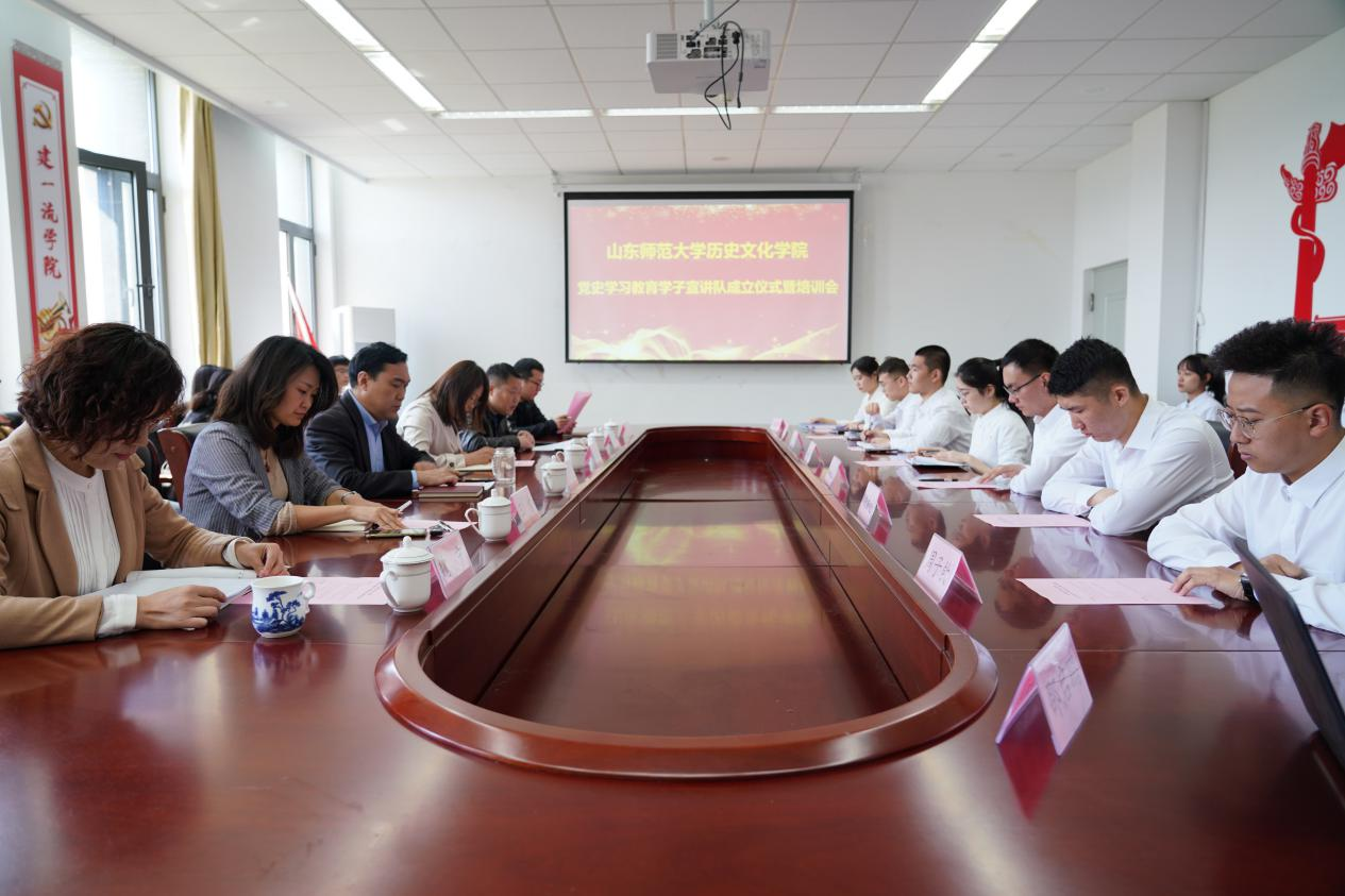 4月14日上午,历史文化学院在长清湖校区崇德楼四层会议室举办党史学习教育学子宣讲队成立仪式暨培训会。校党委宣传部副部长向玉贞、校团委副书记王雪,历史文化学院党委书记刘新生、党委副书记鲁法军、团委书记、学生工作办公室主任魏宁,中共党史教授、省委宣讲团成员刘本森,全体辅导员及党史学习教育学子宣讲队成员参加会议。会议由鲁法军主持。