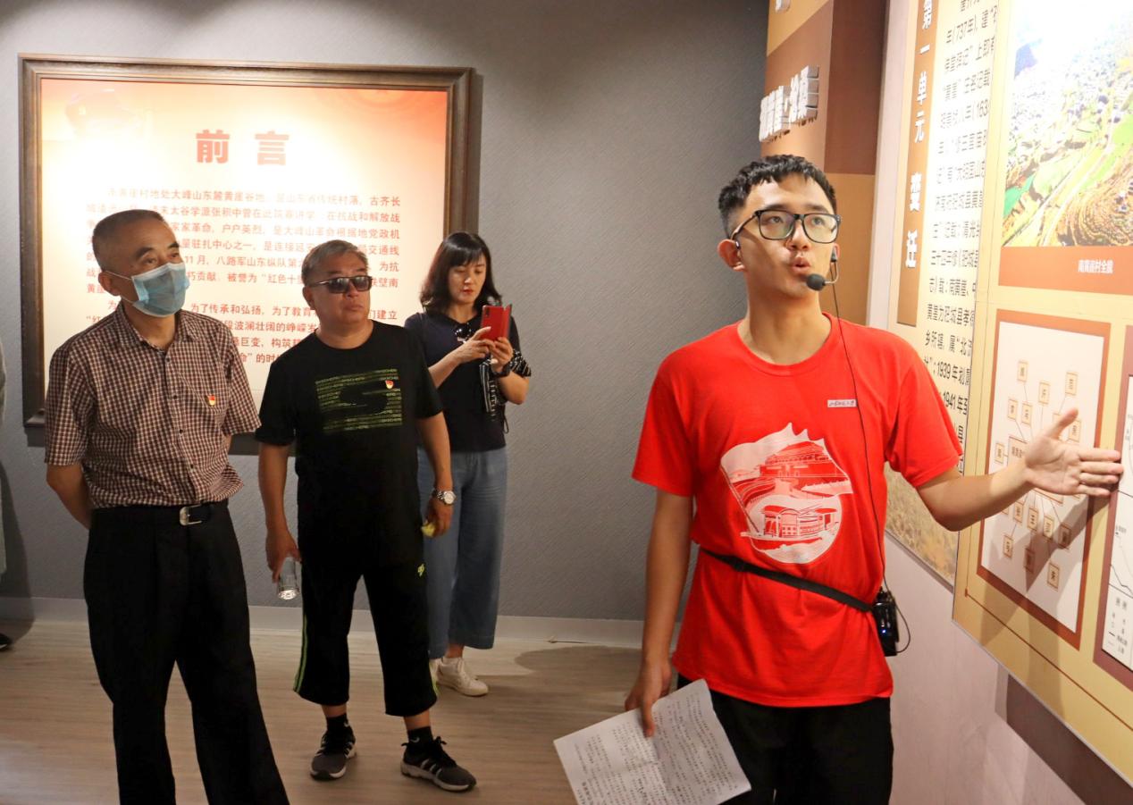 7月8日下午,由历史文化学院党史学习教育学子宣讲队成员组成的实践服务队于南黄崖村史馆开展了讲解活动。队员路桐轩带领游客们参观了村史馆溯黄崖、忆黄崖、烽火黄崖三大板块,并向他们讲解南黄崖的红色历史,共同接受一场红色精神的洗礼。