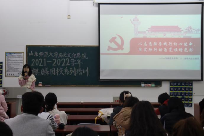 为了帮助学院学子了解研究生支教团,培养有理想、有道德、有文化、有纪律的四有青年,11月21日下午,历史文化学院于长清湖校区崇德楼114教室举办第四期麒麟团校培训活动。本次活动由2021级研究生孟晓雨担任主讲人,部分研究生、学生会与青年媒体中心干事及2020级、2021级各班团支部成员参与。