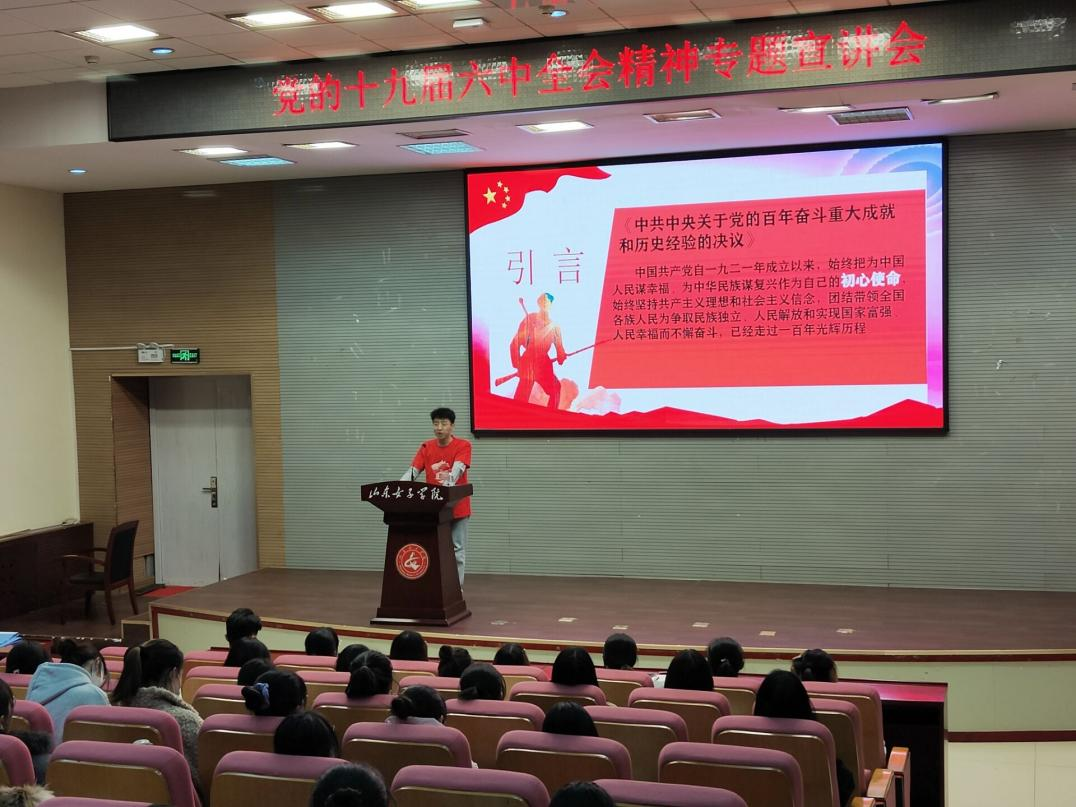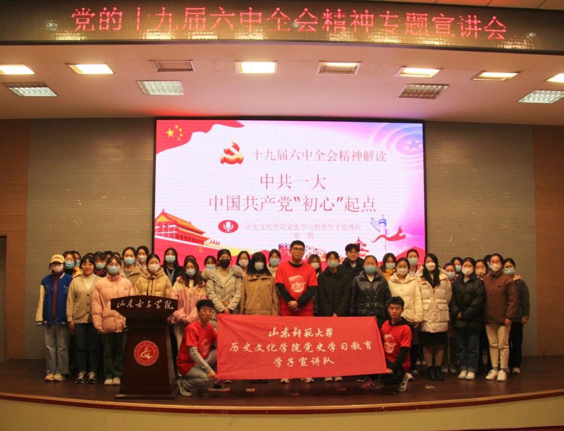 为庆祝建党100周年,学习贯彻党的十九届六中全会精神,在党史学习中砥砺初心使命,汲取奋进力量。12月3日晚,历史文化学院党史学习教育学子宣讲队赴山东女子学院会计学院开展党史宣讲。山东女子学院会计学院团总支书记高莎莎、会计学院学生党员代表和部分本科生以及我院党史学习教育学子宣讲队部分成员等150余人在现场参加了活动。