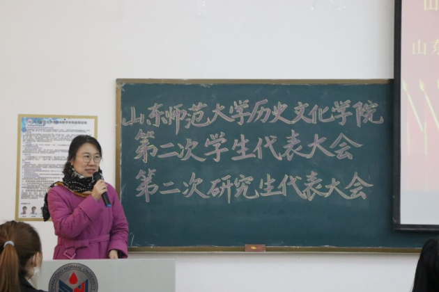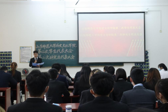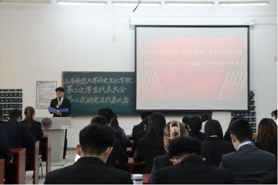 12月12日,历史文化学院第二次学生代表大会、研究生代表大会在长清湖校区崇德楼116教室隆重召开。院党委副书记鲁法军、学生工作处办公室主任学院团委书记魏宁、学院辅导员林淑玉、郭慧颖、衣晓杰、刘畅、蒋艺和全体正式代表出席会议。