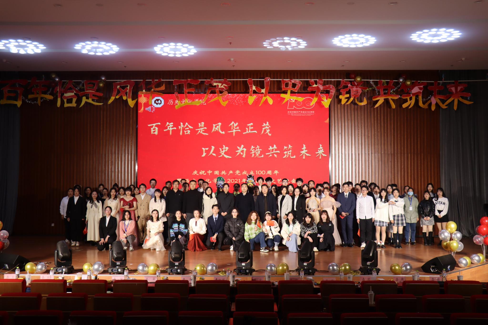 寒潮绕道去,热情洋溢来,12月16日晚,文昌楼105报告厅灯光灿烂、激情荡漾,历史文化学院“百年恰是风华正茂,以史为镜共筑未来”庆祝中国共产党成立100周年暨迎新生文艺晚会的帷幕在此拉开。学院党委书记刘新生,党委副书记鲁法军,中国史一级学科硕士点负责人王林,教师教育中心主任楼建军,学院组织员季鹏,青年教师张凯成,经济学院辅导员李亚男以及全体辅导员莅临现场。
