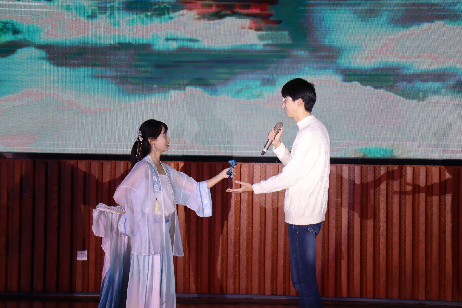 晚会的序幕由一段独具匠心的视频开启,记录着2021级新生入学以来的点滴瞬间。辅导员衣晓杰老师也用视频的方式为学生送来祝福,希望同学们可以继续策马扬鞭,执梦起航。“主人有酒欢今夕,请奏鸣琴广陵客”,山东师范大学飞扬艺术团带来的开场乐《象牙行》曲调高昂、气势恢弘,勾勒出一个排山倒海的大唐盛世。随后,杨瑞洁、吴茂林等人带来的歌曲串烧《余秋有情》婉转悠扬,娓娓动听,将全场氛围燃向高潮。由木哈代提、萨吉达等人表演的新疆舞《花儿》将观众带到美丽的新疆,感受异域风情与民族文化的独特魅力。紧接着,由李思佳、孙潇琨等带来小品《我的老师》,凭借演员精湛的演技,引得台下同学们笑声连连。张浩琪、李玥等同学为大家带来朗诵《我们的青春》,以文字言语穿透岁月悠长,在情感饱满的文字中解读我们热烈又真挚的青春。随后,历史文化学院舞蹈队的街舞串烧《Hey mama》带动全场氛围,给观众带来一场美的视觉享受;“一花一世界,一树一菩提”,观众再一次沉浸于由王雅纯、杨璐颖等人演唱的浪漫民谣《New Boy》。张笑和吕星研带来的相声《搞科研》紧紧抓住观众眼球,现场掌声迭起。紧接着,历史文化学院模特队带来走秀《锦衣旗袍诗,青春花样时》举止处尽显幽兰之姿,轻风带起衣袂飘飞构成一幅绝美画卷;由张鑫忆、杜梦如等人倾力演唱的歌曲《告白气球》,采用欢快对唱的方式,流露出恋人之间的眷眷之心;随后,房梁、孙玉博和金焕带来的京剧《龙凤呈祥》形神兼备,表演上精致细腻,处处入戏,唱腔上悠扬委婉,现场喝彩声不断。王芊骁带来的二胡独奏《新赛马》激昂澎湃,给人以万马奔腾之感。随后,孙潇琨、陈嘉露等人献上配音秀《觉醒红船》,它们独特的声线使角色形象栩栩如生,使同学们深刻体会到在红色岁月中,前辈们为国为民的奉献精神和不屈不挠的革命精神。最终,晚会在大合唱《万疆》的歌声中圆满落幕。