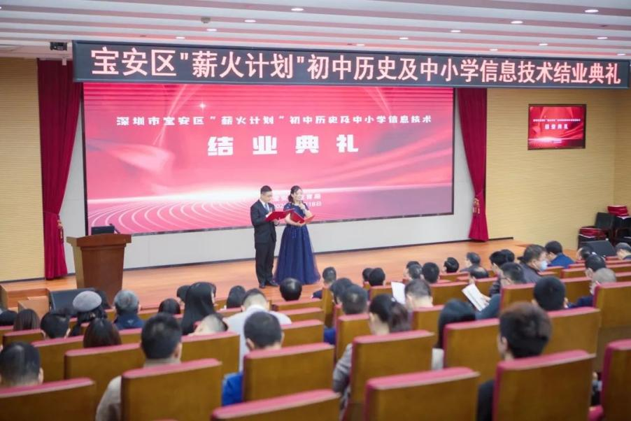 12月18日,宝安区“薪火计划”初中历史骨干教师素养提升项目结业典礼在区教育局举行。宝安区教育局副局长郭杜宁,区教育科学研究院院长彭茂发和全区公办中小学校长出席本次活动,历史文化学院党委书记刘新生、党委副书记鲁法军、副院长燕生东、学院教师教育中心主任楼建军参加结业典礼。