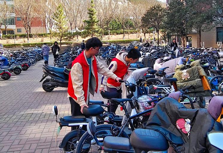 活动伊始,志愿者们在指定活动地点集合,领取志愿者工作服与卫生工具,进行分组后迅速投入电动车摆放工作。随后,志愿者们针对车辆摆放不规范等情况,将侵占过道、停放无序的电动车合理停放。与此同时,另一组志愿者手拿垃圾袋,将道路上遗留的卫生纸,塑料袋,废弃雨衣等进行了清扫。寒冷的天气没有打消同学们的积极性,大家不辞辛劳、团结合作。最后,在大家的共同努力下,一排排摆放整齐的电动车成为亮丽的风景线。真正以实际行动推进美丽校园建设。