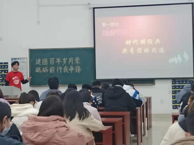 3月24日晚,历史文化学院学子宣讲队走进2018级历史学专业3个团支部,在崇德楼107教室开展主题为“抗日战争时期的共青团组织”的团史宣讲。主讲人为宣讲队成员高鑫,120余名青年团员参加活动。