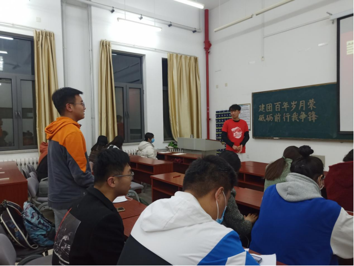 高鑫从共青团组织发展的历史线索切入,重点讲述抗日战争时期共青团组织的发展情况。他从抗战时期我们党改造团组织的背景、措施、成果、历史意义和当代价值等方面进行了详细讲解,拉开了烽火硝烟中无数共青团员听党指挥、前仆后继、不怕牺牲、投身战场的波澜画卷。抗战时期我们党将共青团改造为以西北青年救国联合会为主的数个抗日青年组织,这是祖国的需要和人民的呼唤。在不同历史时期,共青团组织都能冲锋在前。在场团员们深受鼓舞,纷纷表示要向抗日战争中勇敢的共青团战士学习!