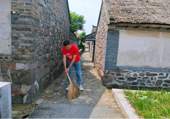 实践队成员在参观学习结束后,为中共即墨县委成立会址进行义务清扫,保持旧址的洁净,做到“知识留痕,参观无痕”。