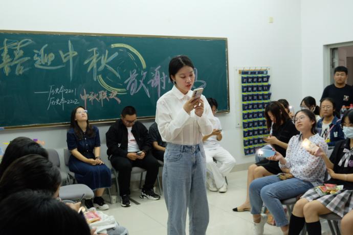 中秋佳节,为增进师生情谊,凝聚家般温暖,2022年9月10日,历史文化学院于山东师范大学长清湖校区崇德楼为2022级新生举办了联欢晚会,2022级辅导员郭慧颖到场与三百名学生共度佳节。