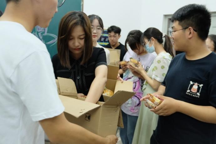 晚会开始之前,郭慧颖代表学院向第一次离家过节的新生们送上了关心和祝福,并贴心地为同学们准备了月饼和饮料。