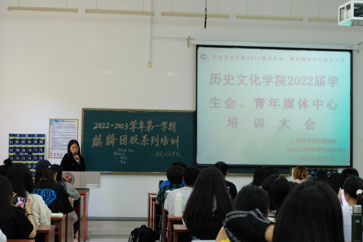 为提升学院学团干部政治素养,促使新生学生干部掌握工作技能,9月25日,历史文化学院团委在长清湖校区崇德楼114教室举办2022-2023学年团校暨学生干部培训。本次活动由院团校负责老师郭慧颖发起,学生会秘书处孙怡同学主讲,学生会与青年媒体中心全体新成员参加。
