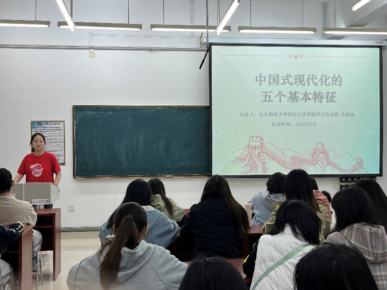 深刻领悟新思想,逐梦青春新篇章。3月27日至31日,历史文化学院学子宣讲队走进我院2021级团支部宣讲党的二十大精神,开展以“中国式现代化的五个基本特征”“以济南为例论中国式现代化理论范式”为主题的6次党史宣讲,260余人参与宣讲。