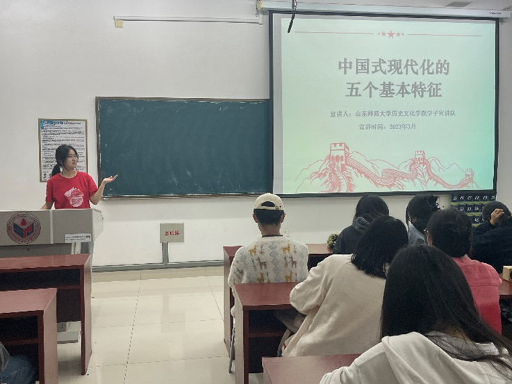 会上,在宣讲“中国式现代化的五个基本特征”时,宣讲队员以社会历史发展观的问题切入,讲解中国式现代化的基本概念与优越性,用理论剖析中国式现代化五个基本特征的历史事件细节。在宣讲“以济南为例论中国式现代化理论范式”时,用生活中的科技热点引入,带领同学们回顾济南现代化历程,以同学们能切身感受到的生活案例,用细节构建出了中国式现代化理论的框架,进而让同学们领悟到中国式现代化。