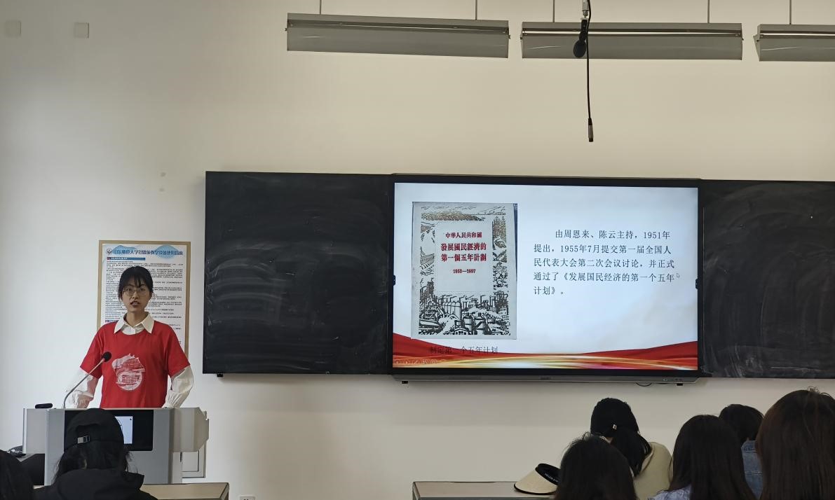 宣讲伊始,陈若雨以总书记的讲话为导入,讲解中国式现代化道路是造福中国人民、促进世界共同发展的必由之路。紧接着,她以中国式现代化的历史回顾为引,依照历史的发展脉络并加之详实的历史资料为佐证,用生动通俗的语言向大家进一步阐释了中国式现代化的伟大进程。最后,她以党的十八大以来中国式现代化的世界意义作为总结升华。