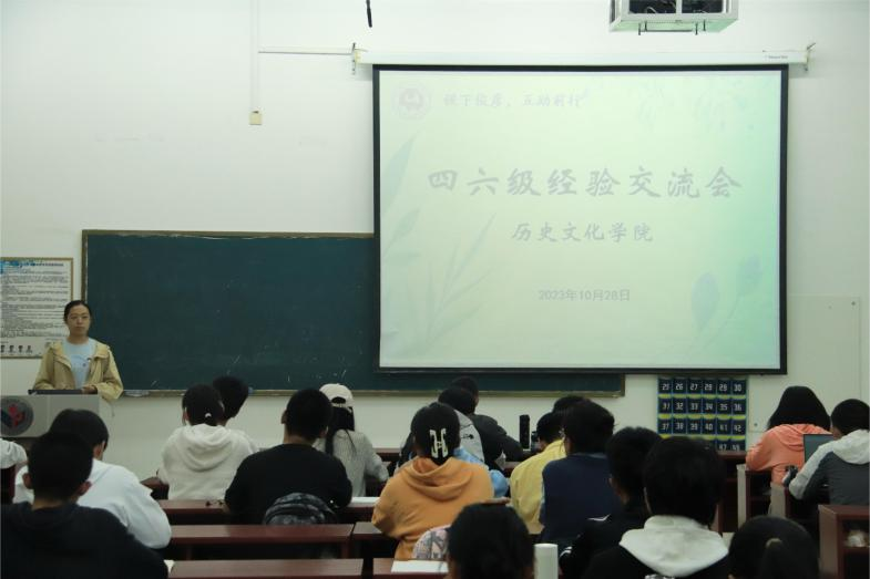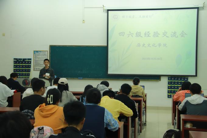 为帮助我院学子更好备战英语四六级等级考试,增强学习热情,10月28日晚,历史文化学院在崇德楼114教室举办“稷下俊彦,互励前行”系列经验交流会之英语四六级经验交流会。本次经验交流会由学院学术创新部举办,杜旭阳主持,张笑、孙乐融、辛松元三位同学分享自己的英语四六级考试经验,近70名同学参加。