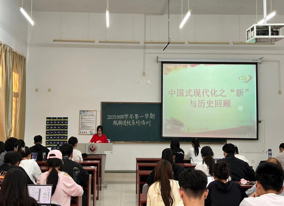 为弘扬百年党史奋斗精神,培育优秀新青年,激励其砥砺奋斗,担当时代责任,11月2日下午,历史文化学院在长清湖校区崇德楼116教室开展了主题为“青春心向党,奋斗新征程——中国式现代化之新与历史回顾”的“麒麟团校”本学期第一期培训。本期培训由学子宣讲队队员张君怡主讲,2022级全体学生干部参加培训。