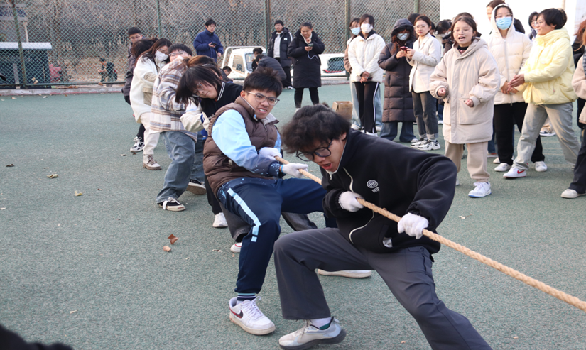 本次拔河比赛规定每班十人参赛,采取三局两胜制,每一局结束后双方队伍互换比赛场地。第一轮胜出的班级进入第二轮比赛,直至决出冠军。