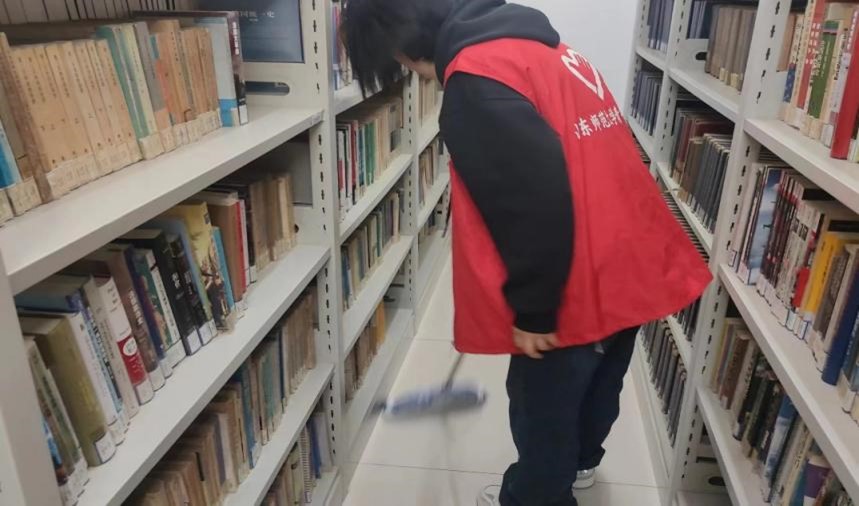 档案室清扫工作中,青年志愿者分工明确,按时集合到达档案室,并在老师的指导下有序进行清扫工作。志愿者们分组擦拭书架、清除书本灰尘、清点书籍数量、清扫地面,致力为同学和老师打造清新雅致的书香氛围。