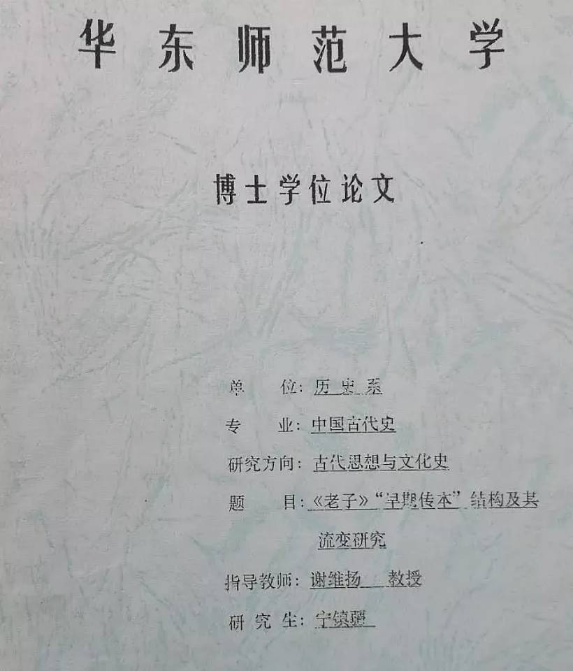 由于在《老子》一书上勉强有点积累,博士二年级毕业论文选题时我的题目定为:“《老子》‘早期传本’结构及其流变研究”,主要措意于“早期传本”的分章、分篇,以及章序、篇序等结构特征,想弄清楚今本81章、上下篇的结构由来,因为当时能看到的郭店简本、帛书本甚至传世的严遵《老子指归》之结构都与81章系统有或多或少的不同。这个题目虽关注出土文献,但却基本不涉及字词考订,也是想尽可能地扬长避短。论文外审、答辩的过程中,专家的反映还不错,尤其觉得以结构研究的视角探讨当时蔚为潮流的“成书”问题,不失新颖。顺便说一下,后来公布的北大简本是77章,“结构”上仍具“早期”特征,证明当初博士论文中的一些看法还不乏预见性。北大汉简本公布以后,其“结构”问题一度又是大家关注的热点话题,学者为探讨这一问题所做的学术史追溯,大多不出我当时搜讨的范围,让我感觉到当初的工作还是有价值的。