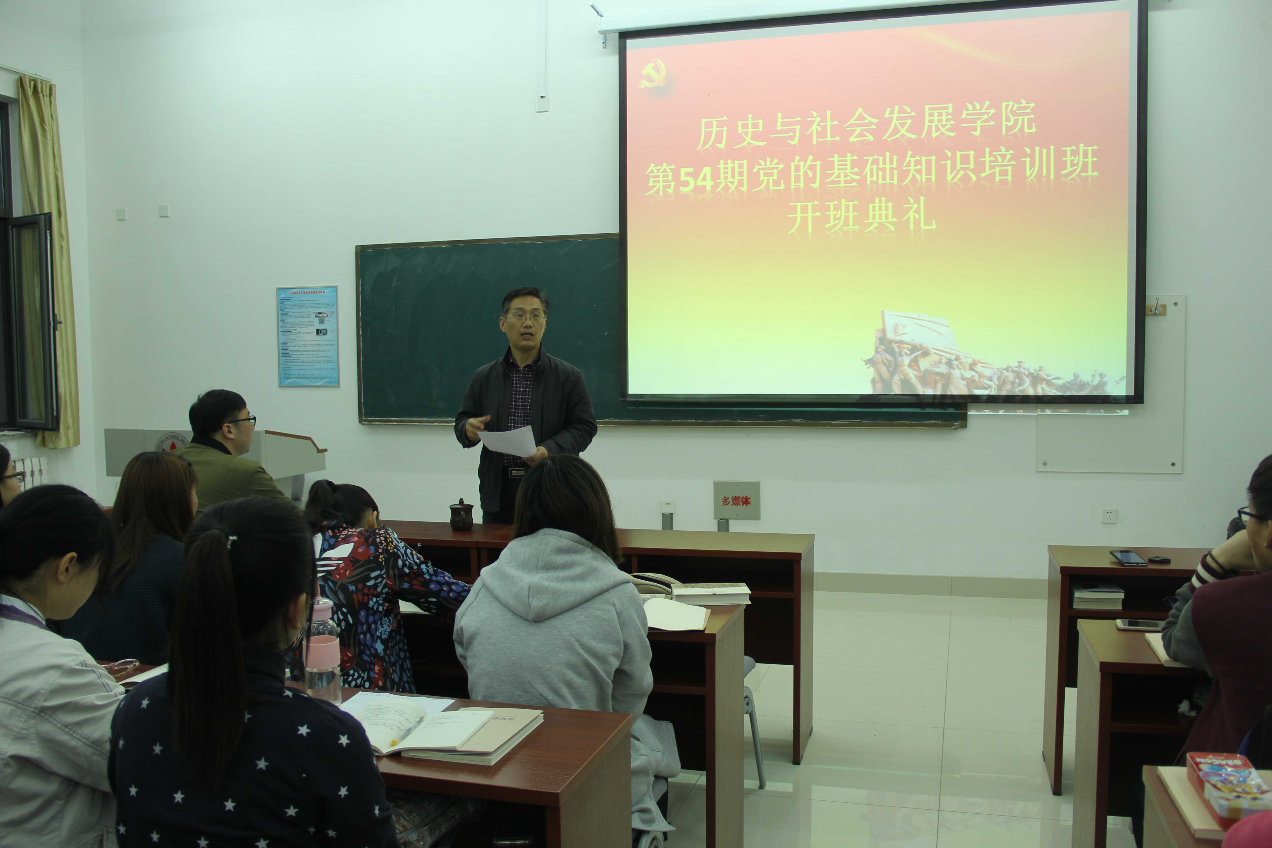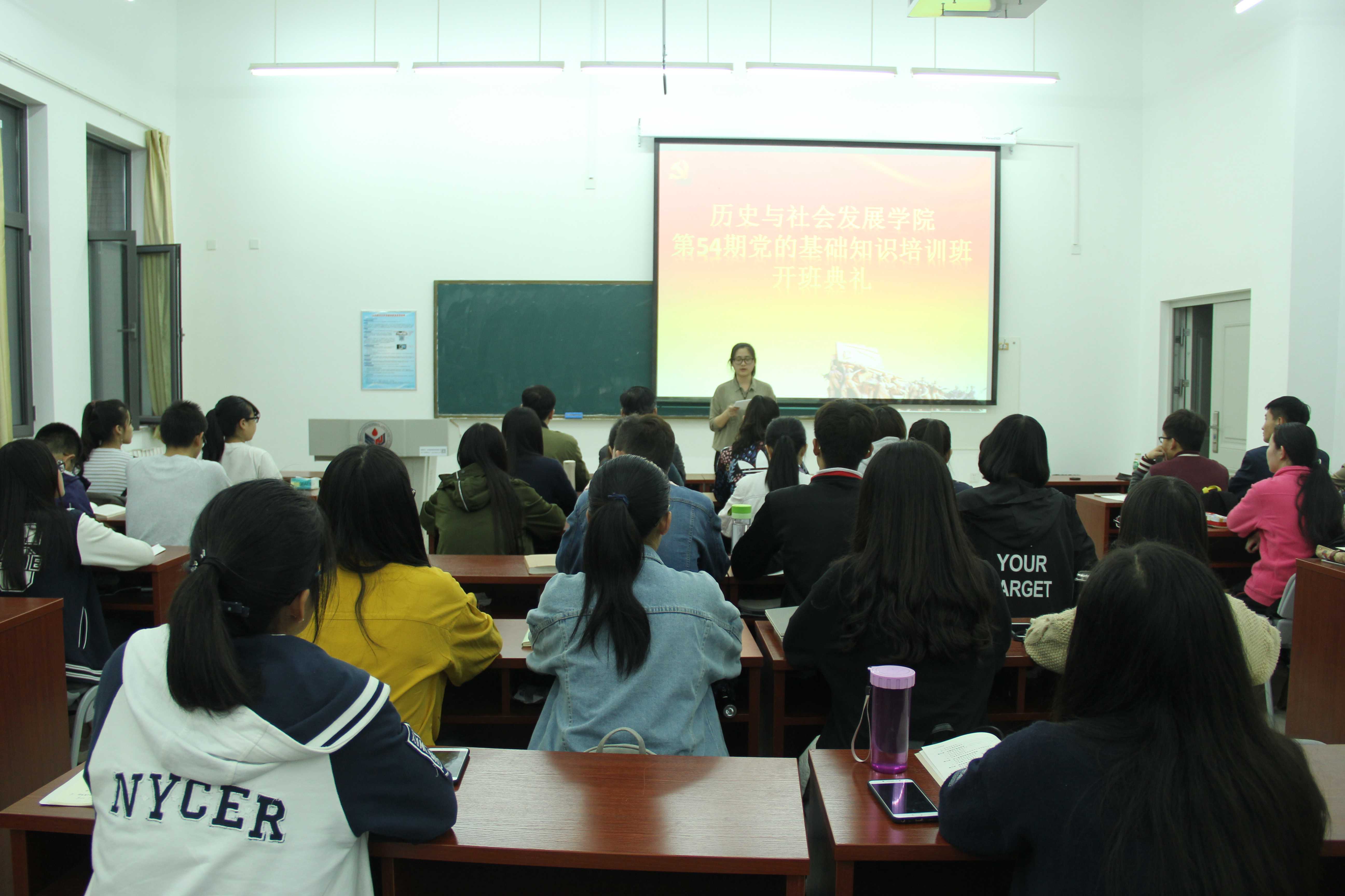 4月19日晚,历史与社会发展学院于长清湖校区历社学院楼116教室举行第五十四期党基班开班典礼。本次开班典礼由2015级辅导员梁肖主持,院党委副书记颜春杰出席会议并致辞,第54期党基班全体成员参加本次开班典礼。