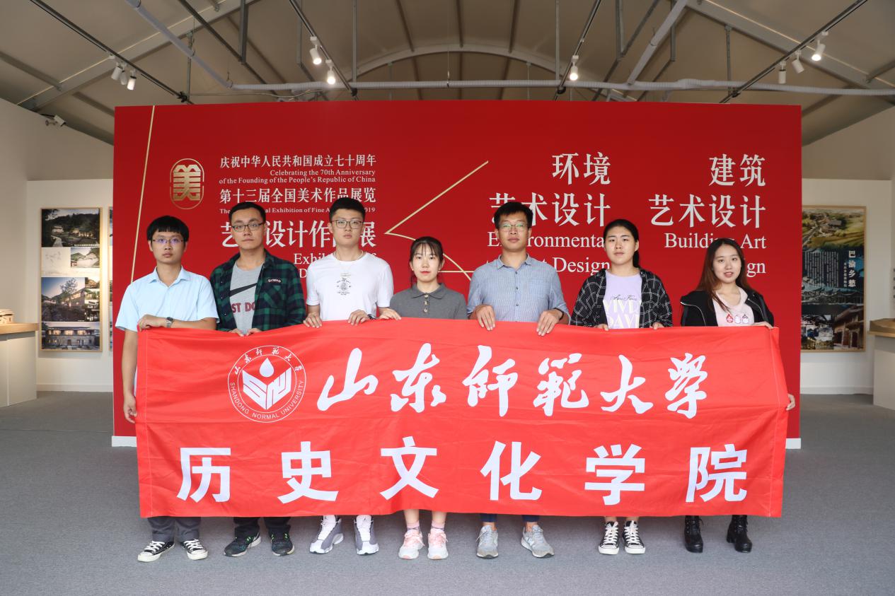 为迎接新中国70华诞,深入学习贯彻习近平新时代中国特色社会主义思想和党的十九大精神,扎实推进“不忘初心、牢记使命”主题教育的开展,9月27日,历史文化学院学生一支部组织开展了主题教育学习,集体到山东工艺美术学院参观第十三届全国美术作品展览艺术设计作品展。学生一支部组织委员、2017级辅导员衣晓杰、宣传委员孟晓雨以及部分预备党员参与此次主题教育活动。